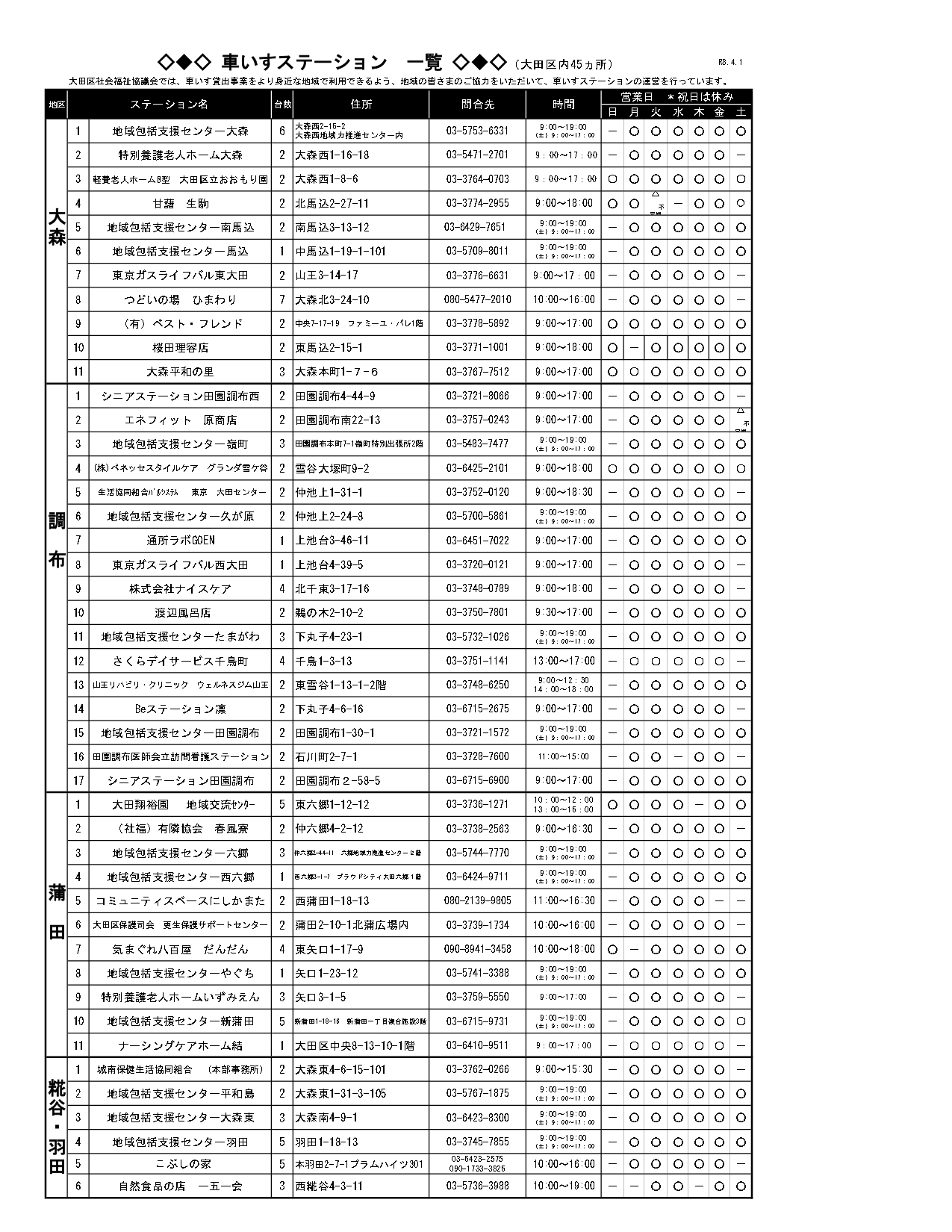 内在住の方で、障がいの有無、年齢にかかわらず、短期間または緊急に車いすが必要な方に、無料でお貸ししています。車いすステーション一覧表はこちらからダウンロードしてください。https://www.ota-shakyo.jp/download_file/view/5093/418
