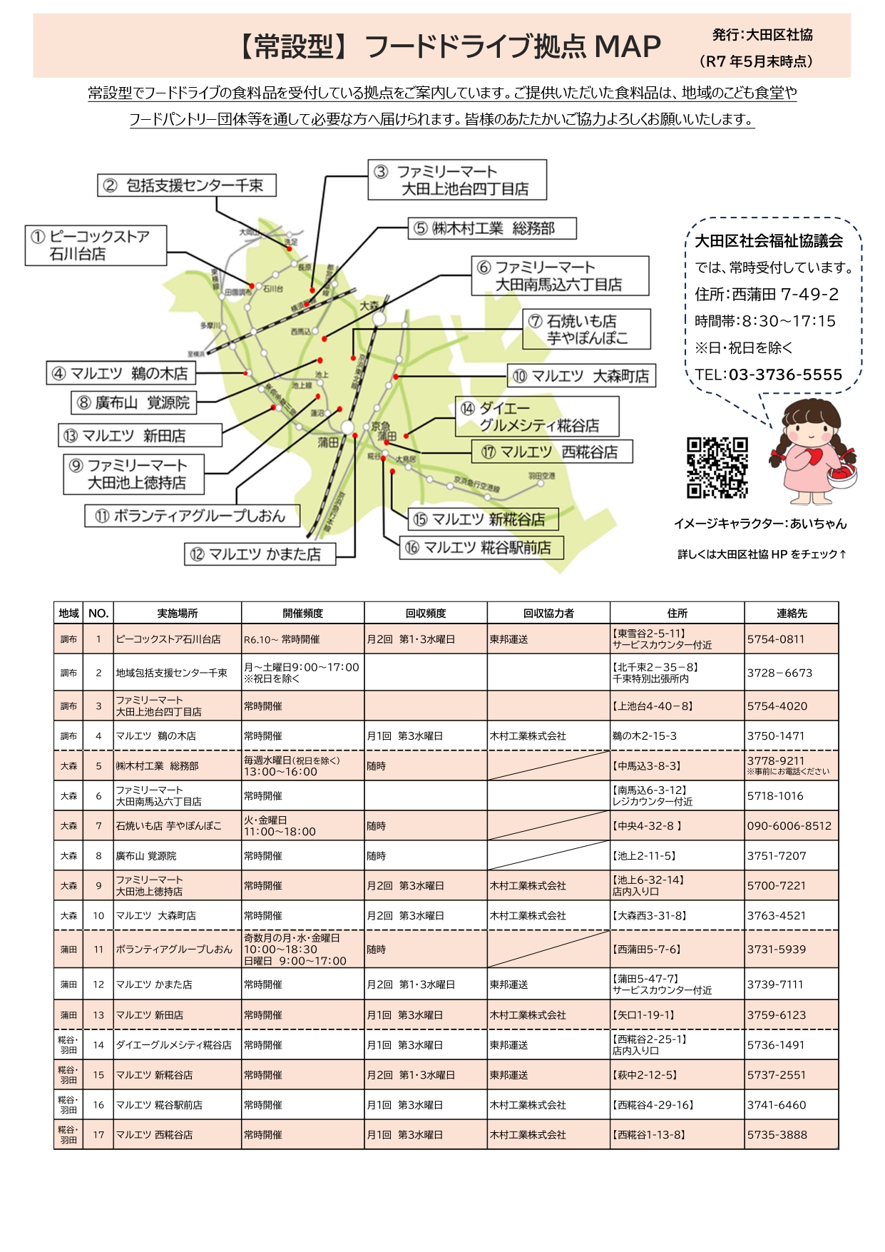 スーパー・コンビニの店舗内や地域の中でも、常設のフードドライブ拠点があります!(詳細は、以下のチラシをクリック⇩)