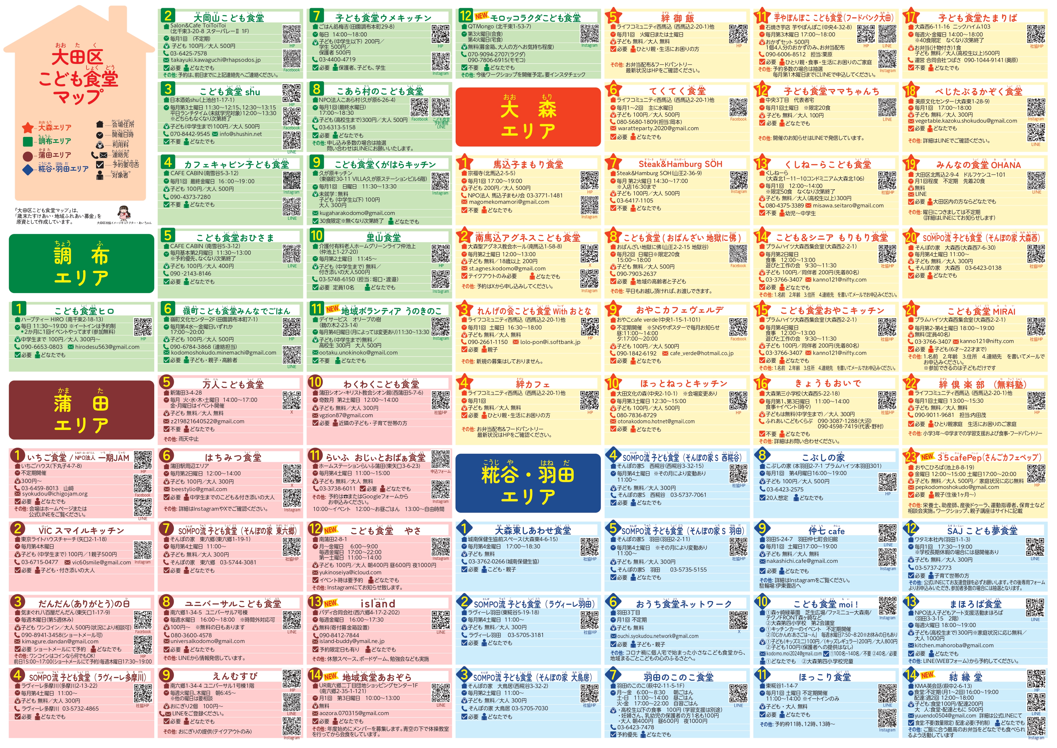 ※こども食堂の開催日時場所等は、変更になる場合もあります。最新の情報は、各団体のSNS等または大田区社会福祉協議会までお問い合わせください。
